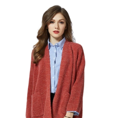 LA 女士宽松毛衣纯色针织衫外套长袖上衣