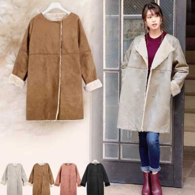 秋冬新款 女士优雅宽松麂皮绒彷皮毛一体中长款仿皮